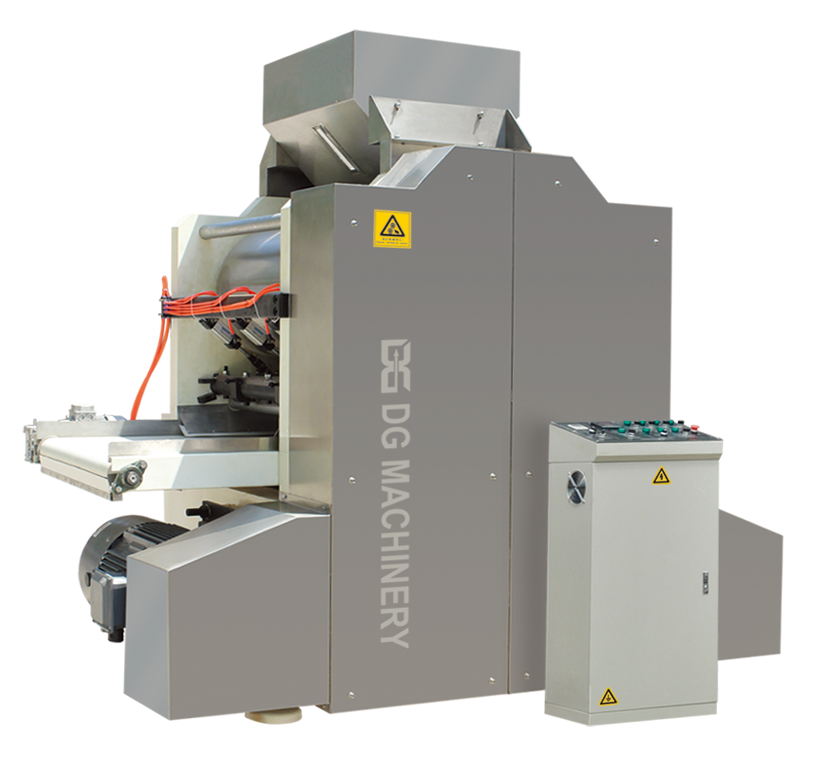 3、壓輥前設(shè)有勻料裝置,防止壓片粘連;
