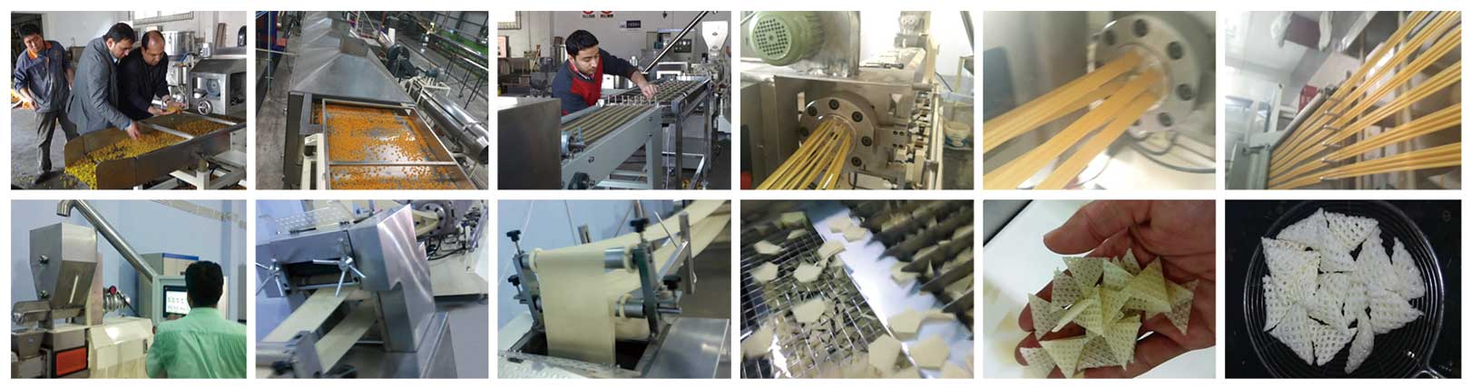 該生產(chǎn)線以面粉、玉米粉、玉米淀粉、木薯淀粉、馬鈴薯淀粉等為原料,即可經(jīng)雙螺桿擠壓機(jī)直接擠出成型、切斷,生產(chǎn)螺旋、方/圓管、洋蔥圈、波浪片等2D坯料;也可配套壓花復(fù)合生產(chǎn)妙脆角、網(wǎng)絡(luò)脆、鴨蛋圓等3D坯料。坯料經(jīng)烘干、油炸、調(diào)味,即可制成口感細(xì)膩酥脆、表面光滑、造型逼真的二次膨化食品;我們的螺桿組合技術(shù)及對(duì)生產(chǎn)過程的精準(zhǔn)控制,可使您的原料選擇更廣、產(chǎn)品品質(zhì)更優(yōu)、品種更多樣。